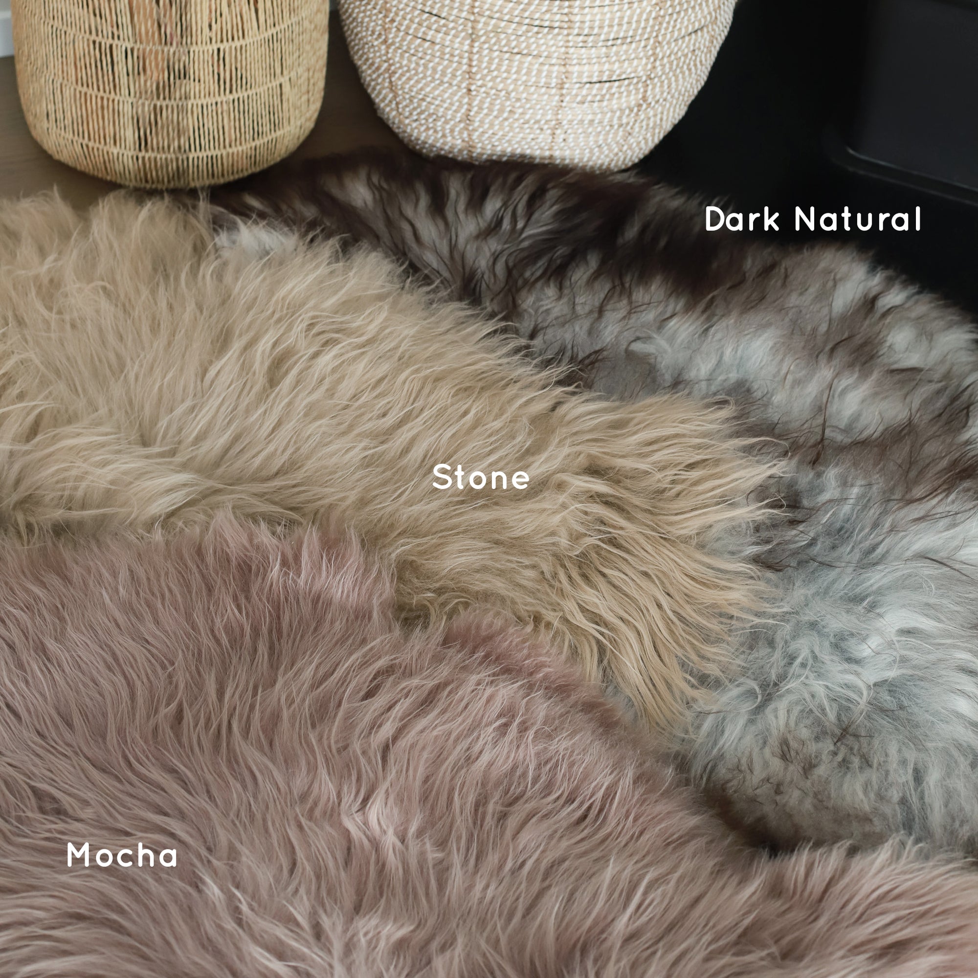 - Stone & Mocha: These sheepskins are dyed to have an even colour